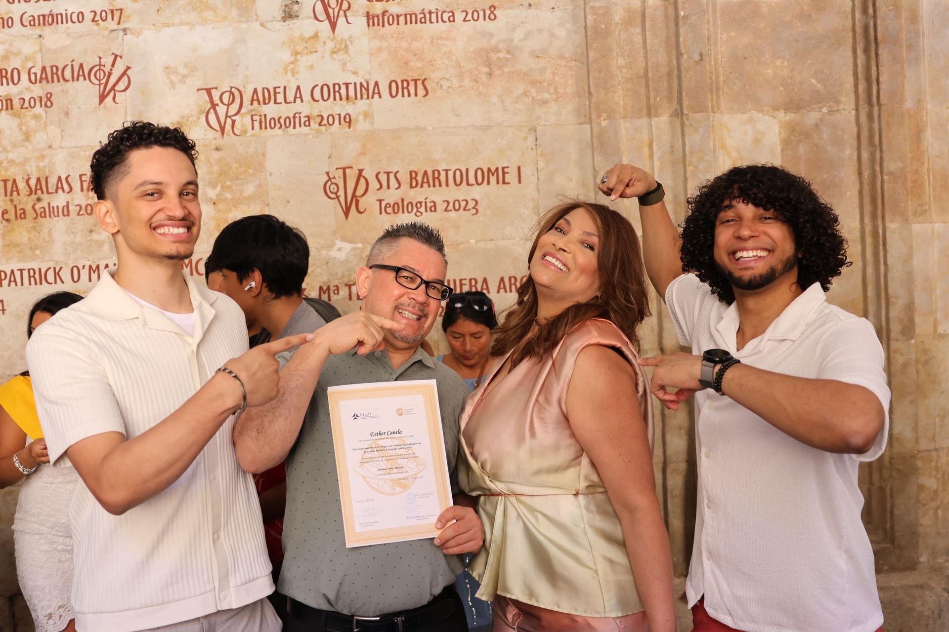 The Canela family celebrating Esther’s graduation at the University of Salamanca in Spain.